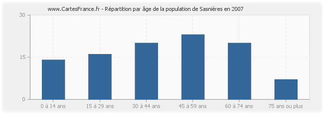 - Population de Sasnières de 30 à 44 ans : 14 habitants