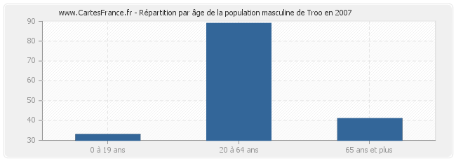 - Hommes de 0 à 19 ans habitant Troo : 33