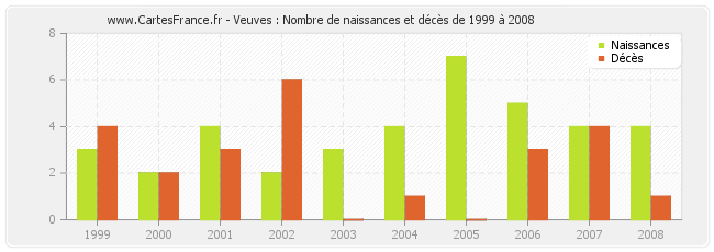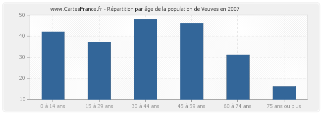 - Le nombre de femmes habitant Veuves en 2007 était de 114