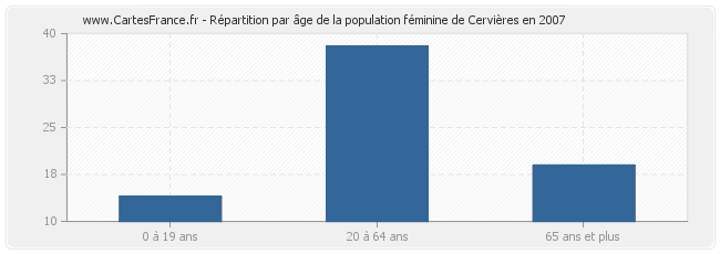 Répartition de la population féminine de Cervières par âge en 2007 :