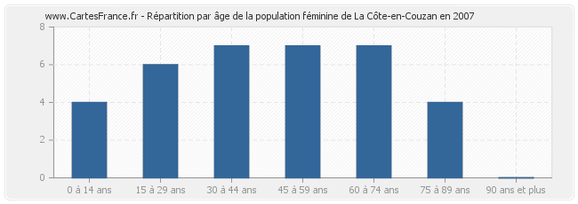 Répartition de la population féminine de La Côte-en-Couzan par âge en 2007 :