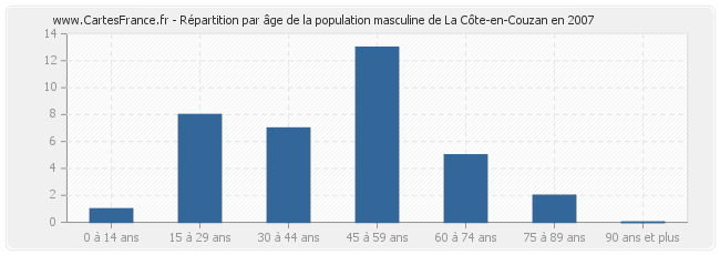 - Hommes de 45 à 59 ans habitant La Côte-en-Couzan : 13