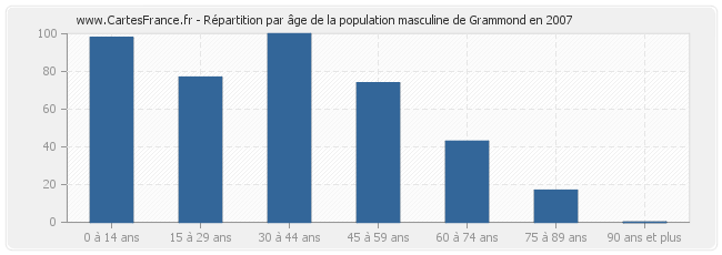 Répartition de la population masculine de Grammond par âge en 2007 :
