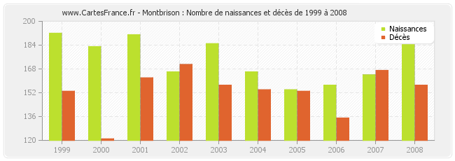 - Montbrison en 2008 : 186 naissances et 157 décès