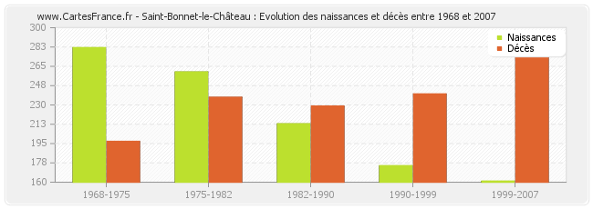 Saint-Bonnet-le-Château : évolution des naissances et décès de 1968 à 2007