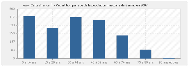 Répartition de la population masculine de Genilac par âge en 2007 :