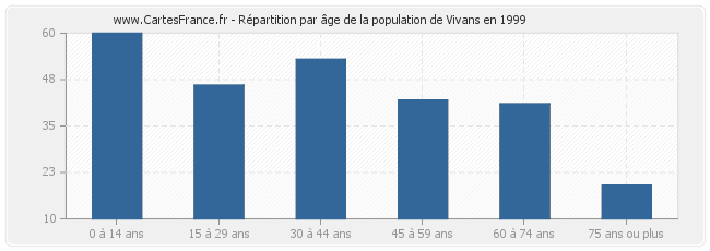 - Population de Vivans de 45 à 59 ans : 42 habitants