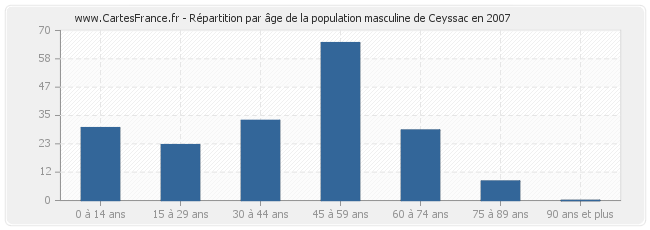 - Hommes de 45 à 59 ans habitant Ceyssac : 65