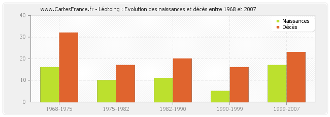 Léotoing : évolution des naissances et décès de 1968 à 2007