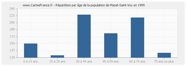 - Population de Mazet-Saint-Voy de 45 à 59 ans : 217 habitants