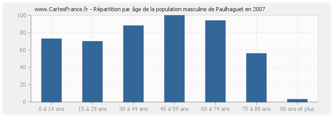 Répartition de la population masculine de Paulhaguet par âge en 2007 :