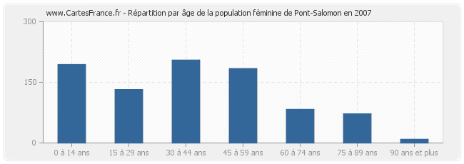 Répartition de la population féminine de Pont-Salomon par âge en 2007 :