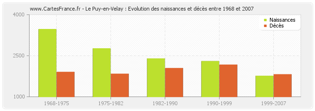 Le Puy-en-Velay : évolution des naissances et décès de 1968 à 2007