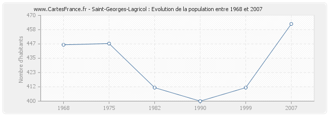 La population de Saint-Georges-Lagricol était de 463 habitants en 2007, 411 habitants en 1999, 400 habitants en 1990, 411 habitants en 1982, 447 habitants en 1975 et 446 habitants en 1968.