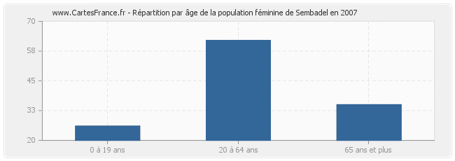 Répartition de la population féminine de Sembadel par âge en 2007 :