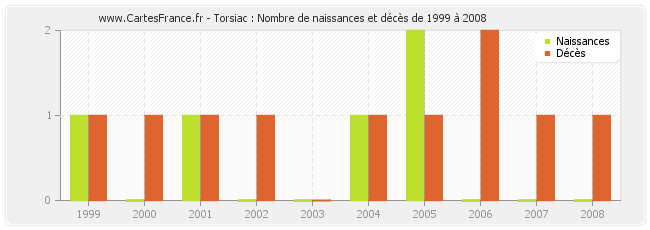 - Torsiac en 2008 : 0 naissances et 1 décès