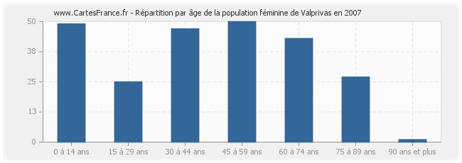 - Femmes de 45 à 59 ans habitant Valprivas : 50