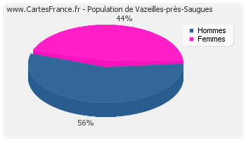 Répartition de la population de Vazeilles-près-Saugues par sexe