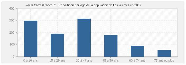 - Population de Les Villettes de 30 à 44 ans : 315 habitants