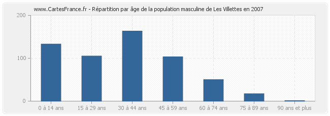 Répartition de la population masculine de Les Villettes par âge en 2007 :