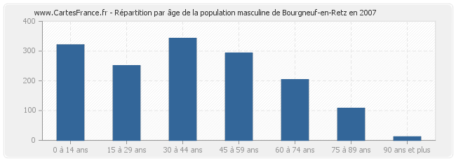 - Hommes de 0 à 14 ans habitant Bourgneuf-en-Retz : 321