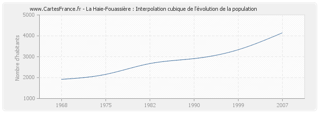 Cette courbe reprend l'historique de la population de La Haie-Fouassière de 1968 à 2007 en interpolation cubique. Ceci permet d'obtenir plus précisément la population de la commune de La Haie-Fouassière les années ou aucun recensement n'a été effectué.