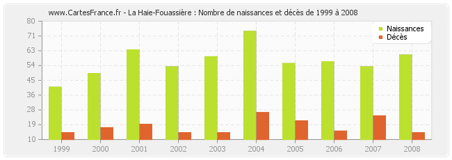 - La Haie-Fouassière en 2004 : 74 naissances et 26 décès
