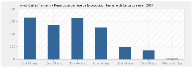 - Femmes de 0 à 14 ans habitant Le Landreau : 330