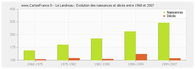 Le Landreau : évolution des naissances et décès de 1968 à 2007