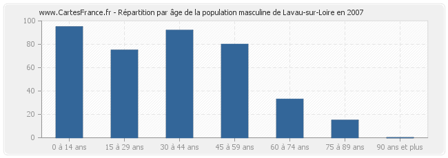 Répartition de la population masculine de Lavau-sur-Loire par âge en 2007 :