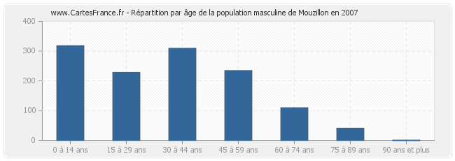 - Hommes de 0 à 14 ans habitant Mouzillon : 318