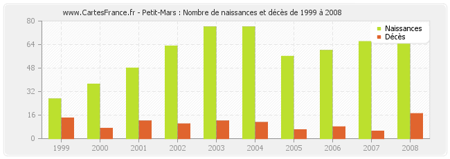 - Petit-Mars en 2008 : 66 naissances et 17 décès