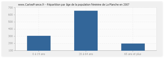 Répartition de la population féminine de La Planche par âge en 2007 :