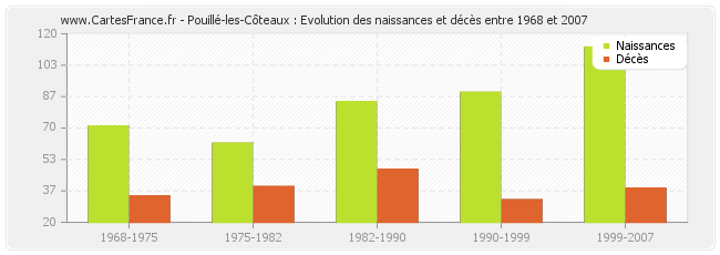 Pouillé-les-Côteaux : évolution des naissances et décès de 1968 à 2007