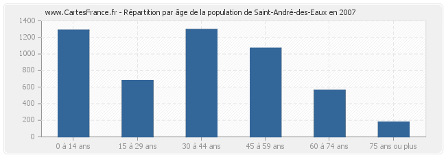 - Population de Saint-André-des-Eaux de 30 à 44 ans : 1 297 habitants