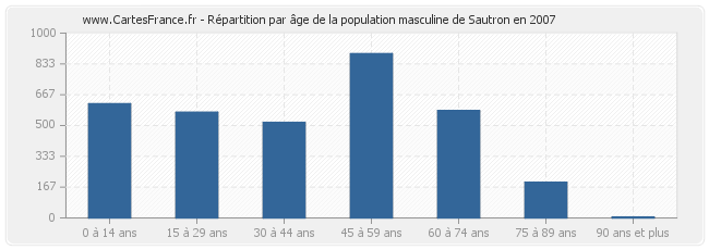 Répartition de la population masculine de Sautron par âge en 2007 :