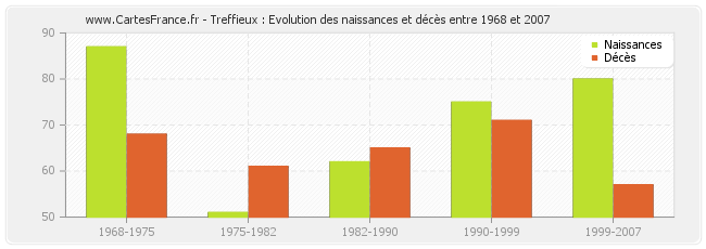 Treffieux : évolution des naissances et décès de 1968 à 2007