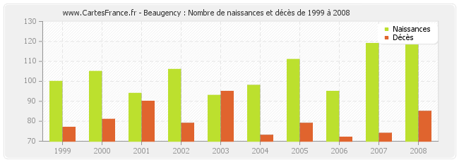 - Beaugency en 2008 : 122 naissances et 85 décès
