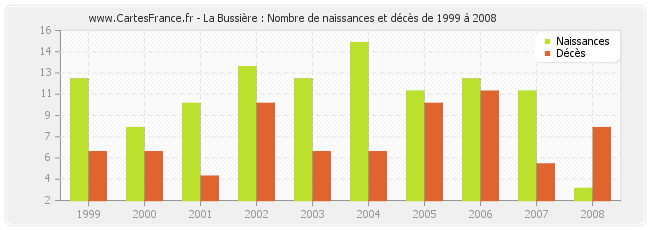 - La Bussière en 2005 : 11 naissances et 10 décès