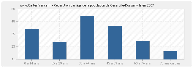 - Population de Césarville-Dossainville de 30 à 44 ans : 53 habitants