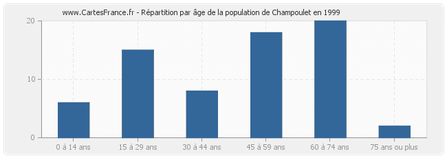 - Population de Champoulet de 60 à 74 ans : 20 habitants