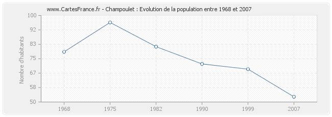 La population de Champoulet était de 53 habitants en 2007, 69 habitants en 1999, 72 habitants en 1990, 82 habitants en 1982, 96 habitants en 1975 et 79 habitants en 1968.