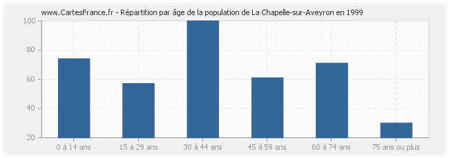 - Population de La Chapelle-sur-Aveyron de 30 à 44 ans : 100 habitants