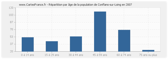- Population de Conflans-sur-Loing de 45 à 59 ans : 111 habitants