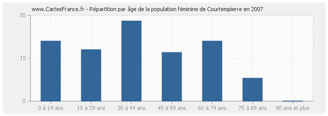 Répartition de la population féminine de Courtempierre par âge en 2007 :
