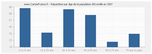 - Population d'Erceville de 0 à 14 ans : 78 habitants