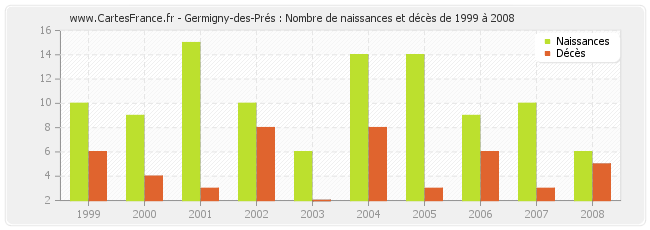 Germigny-des-Prés : naissances et décès de 1999 à 2008