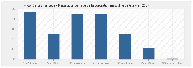 Répartition de la population masculine de Guilly par âge en 2007 :
