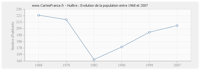 La population de Huêtre était de 208 habitants en 2007, 199 habitants en 1999, 179 habitants en 1990, 162 habitants en 1982, 216 habitants en 1975 et 222 habitants en 1968.