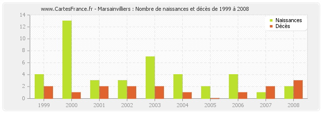 Marsainvilliers : naissances et décès de 1999 à 2008